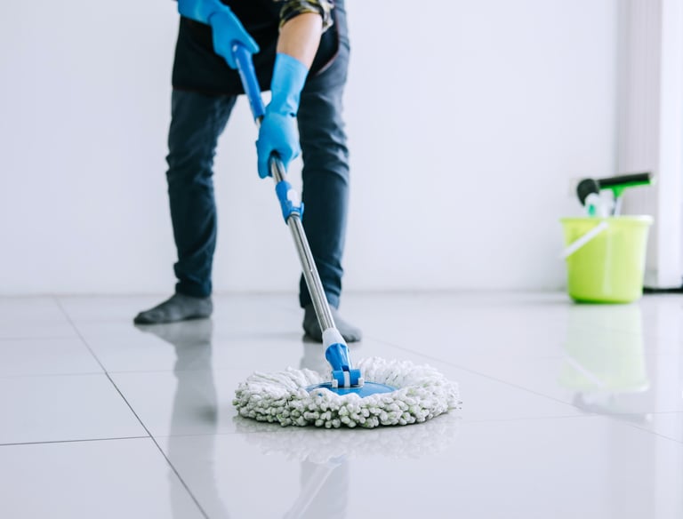 Ménage complet : dépoussiérage, lessivage, vaisselle et nettoyage des pièces d'eau.